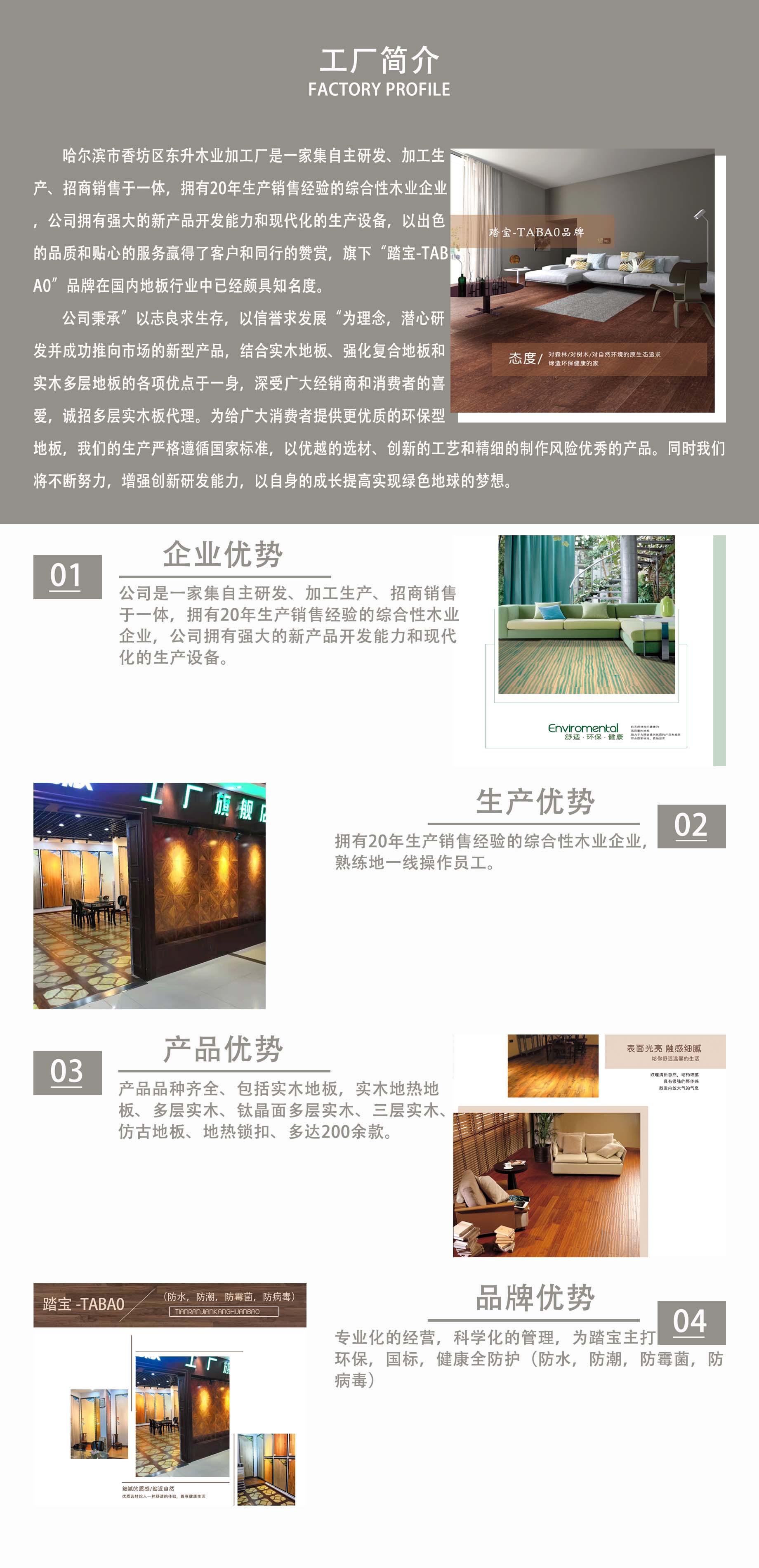 踏宝品牌主打环保,国标,健康全防护(防水,防潮,防霉菌,防病毒)
